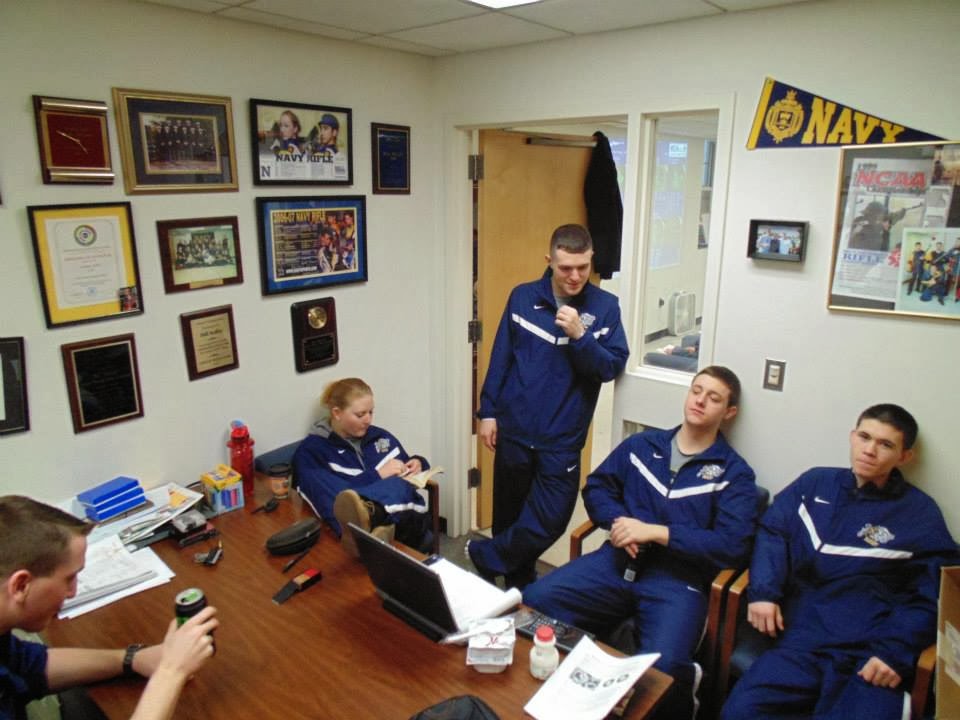Here is the Navy team hanging out in their coaches office. They were helping to host and run the match.